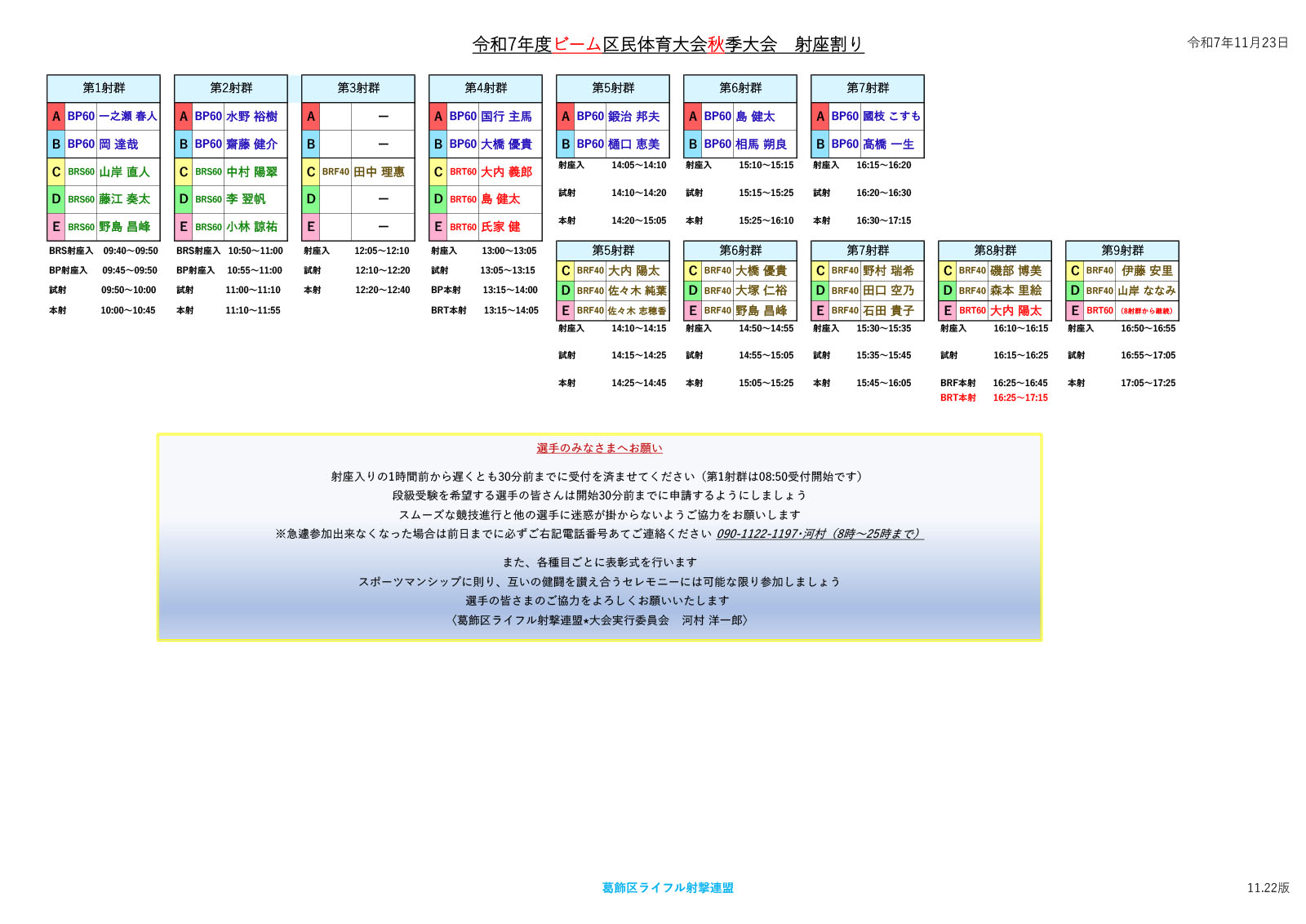 ビーム射撃競技会(葛飾区民大会秋季大会BRBP)射座割